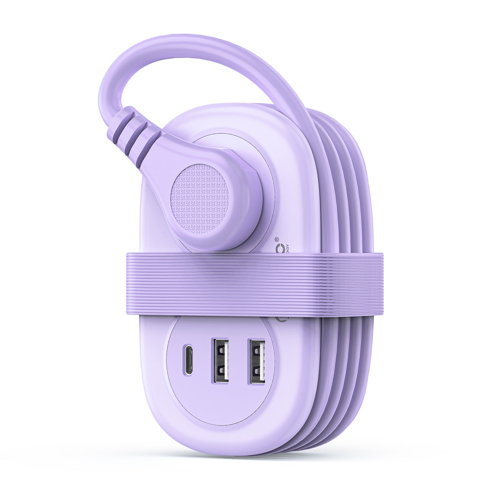 5-in-1 Power Strip with USB-C: 2 AC outlets, 2 USB-A, 1 USB-C, charges up to 5 devices at the same time.